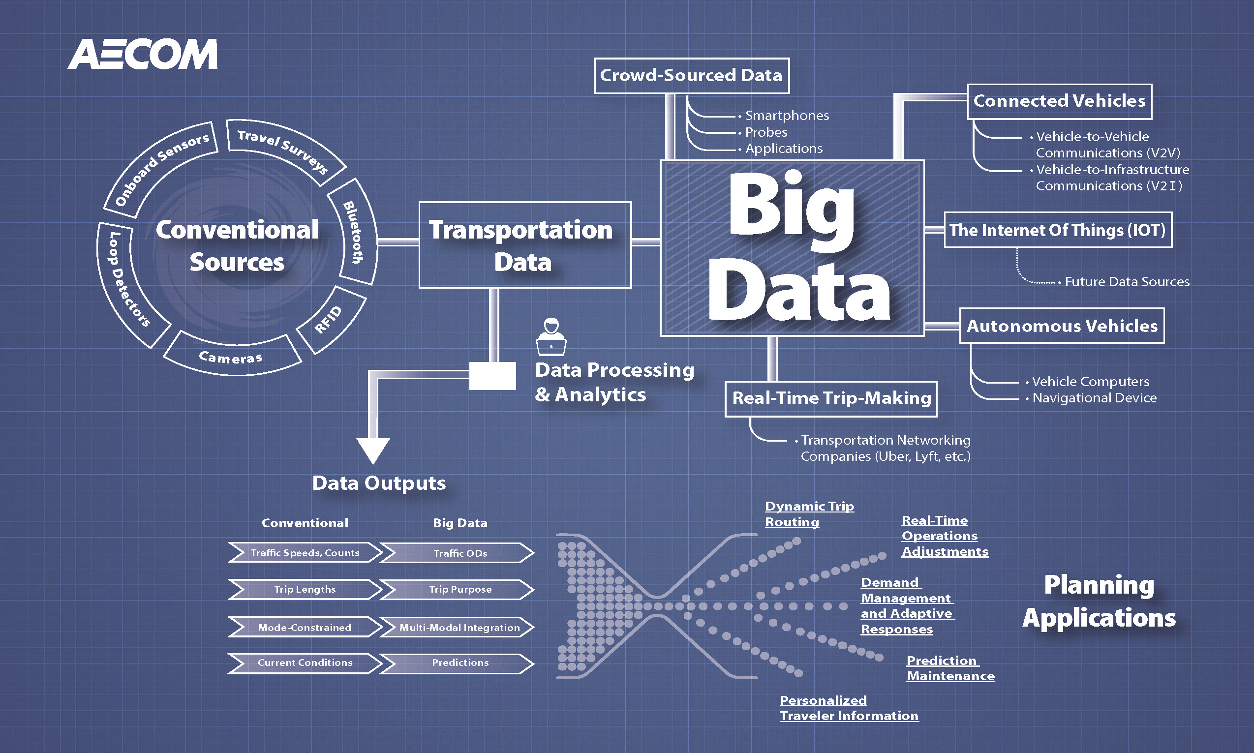 Visualizing Big Data Complex Systems, Clear Graphics.This infographic was built in Illustrator to visualize how conventional and emerging transportation data sources flow into real-time planning applications. From connected vehicles to crowd-sourced data, the design balances clarity with visual hierarchy—helping viewers quickly grasp relationships across systems. I used Illustrator’s shape-building tools and path controls to keep ... Read more